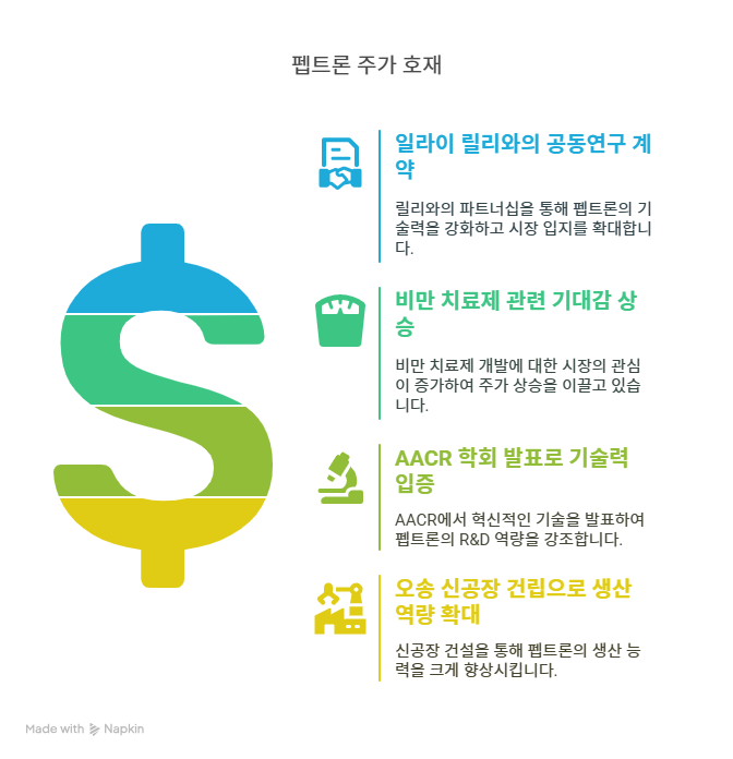 펩트론은 비만 치료제 개발에 주력하며 시장의 주목을 받고 있다. 2025년 4월 11일, 비만 치료제 관련주들이 상승세를 보였는데, 펩트론은 29.99% 급등하며 16만4700원에 거래를 마감했다. 이는 국내 기업의 비만치료제 비임상 결과 발표에 대한 기대감과 미국 FDA의 동물실험 폐지 방침으로 AI 기반 신약 개발이 주목받은 영향이다. 펩트론의 SmartDepot 기술은 1개월 지속형 비만 치료제를 가능케 하며, 글로벌 제약사들과의 협력 가능성을 높인다. 특히, PT403과 PT404 같은 파이프라인은 글로벌 비만 치료제 수요 증가에 힘입어 상업화 가능성이 크다. 이는 펩트론의 주가와 기업 이미지에 긍정적 영향을 미친다.