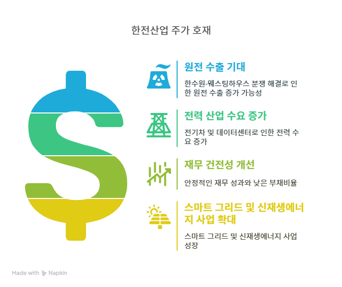 한전산업은 한국수력원자력(한수원)과 미국 웨스팅하우스 간 지식재산권 분쟁 종결로 주목받고 있다. 2025년 1월 비즈니스포스트 보도에 따르면, 한수원은 웨스팅하우스와의 분쟁을 마무리하고 글로벌 원전 시장에서 협력을 강화하기로 합의했다. 이로 인해 한수원이 우선협상대상자로 선정된 체코 신규 원전 수출 계약의 성사 가능성이 높아졌다. 한전산업은 한전의 자회사로 원전 관련 기술 서비스와 유지보수 사업을 담당하며, 체코 프로젝트 수주 시 직접적인 수혜가 기대된다. 주가는 이 소식으로 2025년 1월 17일 장중 17.22% 급등하며 1만 1910원에 거래되었다. 이러한 분쟁 해결은 한전산업의 글로벌 원전 시장 진출과 매출 성장의 주요 동력으로 작용한다。