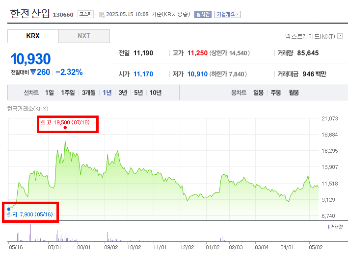 👇👇한전산업 실시 주가 변동은 아래 링크를 통해 확인할 수 있습니다.👇👇